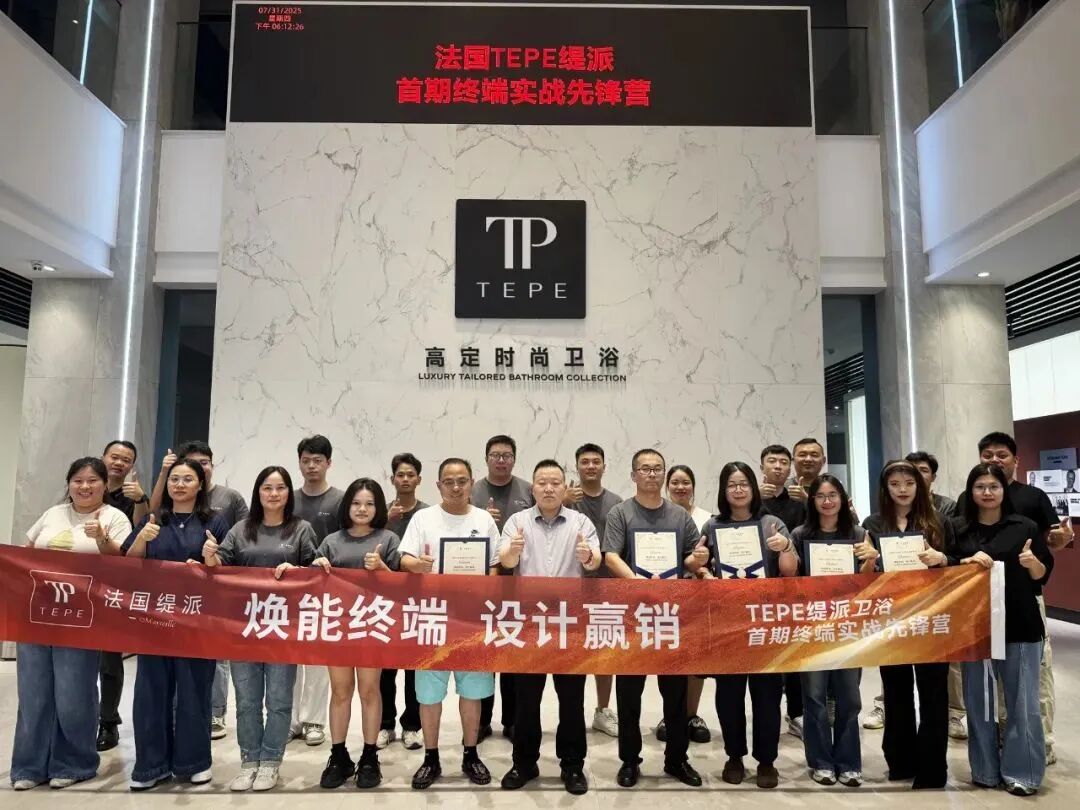 7月29-31日,以“焕能终端·设计赢销”为主题的法国TEPE缇派首期终端实战先锋营在佛山总部圆满举办。来自全国的核心经销商精英齐聚一堂,开启为期三天的沉浸式学习与蜕变之旅。品牌营销中心总经理王弟红表示,在新零售的背景下,要以人为中心,关注消费者的体验,要对销售人员重新定位,打造以设计为驱动的销售模式,坚持缇派销售IP:设计体验/所见即所得,为每一个客户定制美好浴室生活。